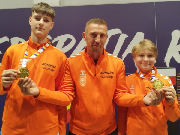 A vasárnapi bajnokok: Mézinger Máté (U13) és Haller Márk (U11) edzőjükkel, Nagy Lehellel